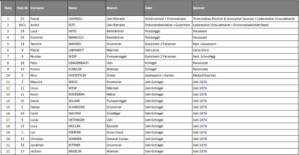 Ranglyschte Ainzel inkl. Bryyse und Sponsoore